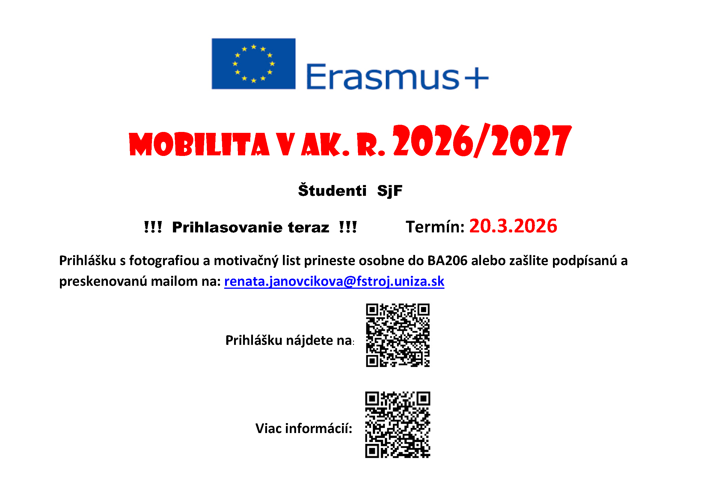 Prihlášku nájdete na: https://www.fstroj.uniza.sk/.../erazmus